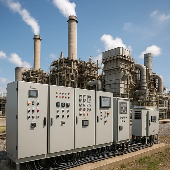 - CEMS panels track emissions in real-time for regulatory compliance.